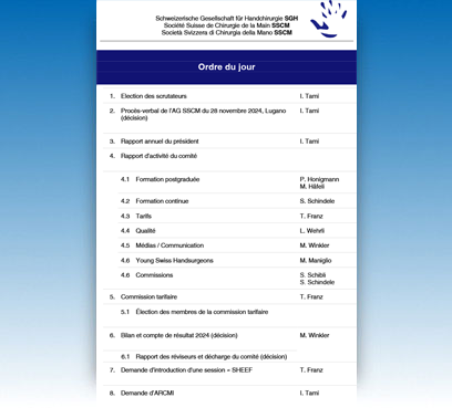 En 2025, le congrès se déroulera à nouveau à Lugano, dans le magnifique Tessin ensoleillé. Pendant ces deux journées, des sujets clés de la chirurgie de la main et de la rééducation de la main seront abordés et approfondis. L’échange d’expériences enrichissantes occupera une place centrale.