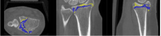 AbstractIntroduction: Numerous established classification systems for distal radius fractures and the corresponding surgical treatment strategies are based on the subdivision of intra-articular fractures into key fragments, which are separated by fracture lines or comminution zones. However, the morphology of the intervening fracture zones remains poorly understood. The aim of this study was to gain a deeper understanding of fracture zones in intra-articular distal radius fractures and to develop a deep learning-based method for the automated segmentation of these zones using computed tomography (CT) data. Methods: A dataset comprising 59 manually segmented and annotated CT scans of intra-articular distal radius fractures served as the ground truth. Fracture zones were algorithmically extracted from segmentations of individual bone fragments and were visually validated on a sample basis. A 3D U-Net was then trained to segment fracture zones in new CT scans. Various preprocessing steps, such as data augmentation, region-of-interest (RoI) cropping, and targeted modifications of the fracture zones, were implemented to optimize the model’s accuracy. Results: The best-performing model achieved a Dice score of 0.2944 and an Intersection over Union (IoU) of 0.1784 for the task of automated fracture zone segmentation. These comparatively low values were attributed to the challenges associated with generating a reliable ground truth dataset. Discussion: Fracture zones are often extremely difficult to delineate in CT scans, even for clinical experts, and frequently require interpolation based on professional experience during annotation. This contributes to a degree of uncertainty in the training data. Furthermore, the course of fracture zones follows a structural logic that is only partially discernible in CT imaging. Even fractures classified as identical can exhibit significantly different fracture zone morphologies. Conclusion: Overall, this study demonstrates that the automated segmentation of fracture zones remains limited at present and is subject to substantial methodological and data-related challenges. Nonetheless, a deeper understanding of fracture zone morphology through automated segmentation techniques could significantly enhance precision in diagnosis, classification, and surgical planning. ![]() ![]() |