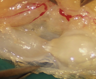 Material and methods : We report the story of a 34 years old patient, who presented acute non-traumatic pain centered on the left forearm, non-responsive to oral medication (NSAID, Paracetamol) which lasted 48h and ended with a complete loss of fingers extension and weakness of wrist extension with radial deviation. The pain was radiating in the arm and shoulder and associated with burning sensation or electric shock without allodynia. The patient was quickly addressed to a neurologist who conduct an ENMG exam which describes a focal motor neuropathy of the PIN. An echography done in the same time found and hourglass like constriction of the PIN 3cm distal to the elbow. After 4 months of physiotherapy, ergotherapy and electrical muscle stimulation, the clinical evaluation and the successive EMG exam were showing no evidence of recovery. In this setting microsurgical epi/perineurolysis was performed while taking care of preserving the axonal continuity.