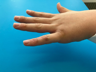 AbstractIntroduction Tendinous mallet finger is a common pathology with a well-established protocol for conservative treatment. In this case we present a patient where the conservative treatment led to complications that required surgical revision and intense occupational therapy. Case Report We present the case of a 15-year-old male, who sustained a trauma to the pinky of his left hand playing handball. He was referred by the pediatric emergency department with a diagnosis of a tendinous mallet finger. Conservative management was initiated using a Stack splint for 8 weeks. Upon follow-up, the patient presented with a splint in extension, resulting in an hyperextension deformity (40°) of the distal interphalangeal (DIP) joint and a concurrent flexion contracture (15°) of the proximal interphalangeal (PIP) joint. The patient reported no pain and full finger flexion was present. Occupational therapy was initiated and a nighttime splint including the PIP joint was applied for another 8 weeks. While partial correction of the PIP contracture was achieved, the DIP hyperextension persisted. Clinical examination showed that the deformity was passively reducible. Sonographic evaluation demonstrated an intact central slip insertion with mild subluxation of the lateral bands. MRI was performed to further assess the extensor apparatus and revealed a shortened terminal slip. Surgical correction was recommended and accepted by the family. A WALANT tenolysis with Z-lengthening of the shortened terminal extensor tendon was performed. Postoperatively, the patient developed adhesions, resulting in limited DIP flexion. This was managed with intense hand therapy over 4 months. At the final 15 months follow-up, the patient demonstrated good flexion and extension of the digit, including complete fist closure. The range of motion in the DIP joint was extension/flexion 5/0/45°. Grip strength on Jamar Dynamometer revealed a symmetric strength of 45 kg. Conclusion This case highlights a rare iatrogenic complication of conservative mallet finger treatment. Immobilization in inadequate Stack splints can lead to a Boutonnière-like deformity. Surgical tendon lengthening and hand therapy restored full function. Early recognition and management are key to prevent permanent sequelae after accidental hyperextension splinting of finger joints. ![]() ![]() |