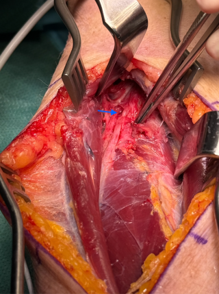 AbstractHintergrund Die Fraktur des Hamulus ossis hamati ist eine seltene und oft übersehene Verletzung. Aufgrund der anatomischen Nähe zum Ramus profundes des N. ulnaris kann eine Fraktur zu dessen Irritation oder Kompression in der Loge de Guyon führen. Dies kann motorische Defizite, insbesondere eine Schwäche der intrinsischen Muskulatur verursachen und führt zu einer gestörten Feinmotorik und möglicherweise einer Krallenstellung der Digiti IV und V. Ziel Ziel dieser Fallpräsentation ist es, das Bewusstsein für die potenzielle Verbindung zwischen einer Hamulusfraktur und einer Ulnarisneuropathie zu schärfen. Insbesondere soll verdeutlicht werden, dass bei isolierten motorischen Defiziten des N. ulnaris ohne sensible Ausfälle gezielt nach einer ossären Ursache gesucht werden sollte. Methodik Ein 21-jähriger Patient stürzte im August 2024 mit dem Velo auf die linke Hand. Posttraumatisch zeigte sich ein schmerzloses Extensionsdefizit in den PIP Gelenken IV und V. Konventionell radiologisch wurde zunächst eine Fraktur und im Verlauf sonographisch eine Sehnenläsion ausgeschlossen. Klinisch imponierte nach knapp drei Monaten eine Atrophie im Bereich des Interossei dorsales I. Im späteren Verlauf wurde computertomographisch eine Fraktur an der Basis des Hamulus ossis hamatum nachgewiesen. Therapeutisch versuchte der Patient mittels Elektrotherapie die intrinsische Muskulatur zu kräftigen sowie die Fingergelenke passiv freizuhalten. Zudem wurden Strategien für die Alltagsbewältigung vermittelt. Wenige Wochen nach der Neurolyse und der Osteosynthese vom Hamulus ossis hamatum erholte sich die Funktion vom N. ulnaris vollständig. Resultate Ein motorischer Ausfall des N. ulnaris kann auf eine unerkannte Fraktur des Hamulus ossis hamati zurückzuführen sein. Kleine Nuance in der Anamnese und klinischen Untersuchung machen hier den Unterschied aus und können im Zusammenspiel zwischen Handchirurg:in und Therapeut:in zur raschen Diagnosestellung beitragen um gezielt der muskulären Atrophie entgegenzuwirken. Eine enge Zusammenarbeit und eine direkte Kommunikation zwischen Handchirurgie und Handtherapie ist unumgänglich. Literatur - Tian, A., & Goldfarb, C. A. (2021). Hook of Hamate Fractures. Hand clinics, 37(4), 545-552. doi: 10.1016/j.hcl.2021.06.013. - Davis, D. L. (2017). Hook of the hamate: the spectrum of often missed pathologic findings. American Journal of Roentgenology, 209(5), 1110-1118. doi: 10.2214/AJR.17.18043. |