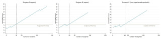 AbstractAim: The aim of this study was to (1) determine the learning curve for thumb carpometacarpal (CMC) implant arthroplasty and estimate the number of cases required for proficiency; (2) assess whether surgical experience influences the number of cases required to reach proficiency and (3) compare 2-year outcomes and revision rates between patients treated before and after the learning curve plateau. Methods: Data of 338 patients who received a Touch® prosthesis (KeriMedical) and who were prospectively documented in a registry were used. We included all operations performed by two highly experienced hand surgeons (A, B) and one less experienced specialist (C). The primary outcome measure was the number of surgeries required to achieve surgical proficiency, using the cumulative sum (CUSUM) method. In this method, surgery time and intraoperative radiographic exposure time are used as proxies for calculating the learning curve. Results: Surgery and intraoperative radiographic exposure times decreased for all surgeons as the number of cases increased. The resulting learning curve showed that surgical proficiency was achieved at case 33 for surgeon A and B, and case 40 for surgeon C (Figure 1). Mean surgery times were 39±8min, 43±7min and 59±19 min, respectively, and radiographic exposure times were 25±19s, 57±25s and 97±46s. Two-year outcomes and revision rates were not worse for patients who underwent surgery before achieving proficiency. The most frequent reason for revision was cup loosening. This stems from various factors beyond the technical learning curve. With increasing experience, broader indications led to selecting more challenging cases with bone deficiency and difficult soft tissue conditions. This increases the risk of intraoperative complications and less favourable postoperative outcomes. Conclusion: Our findings indicate a considerable learning curve for TMJ implant arthroplasty, with experienced surgeons achieving proficiency more quickly. Although outcomes before reaching the learning curve did not differ from those operated on later, we recommend comprehensive training when introducing this procedure and a high case volume to improve surgical skills. ![]() |